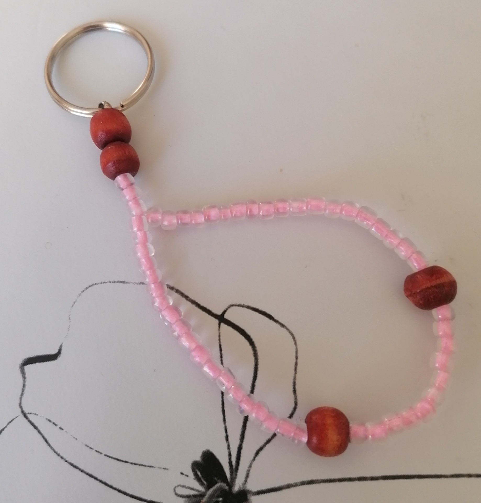 Kätevä avaimenperä. Väri vaaleanpunainen. Pituus n 12 cm.
