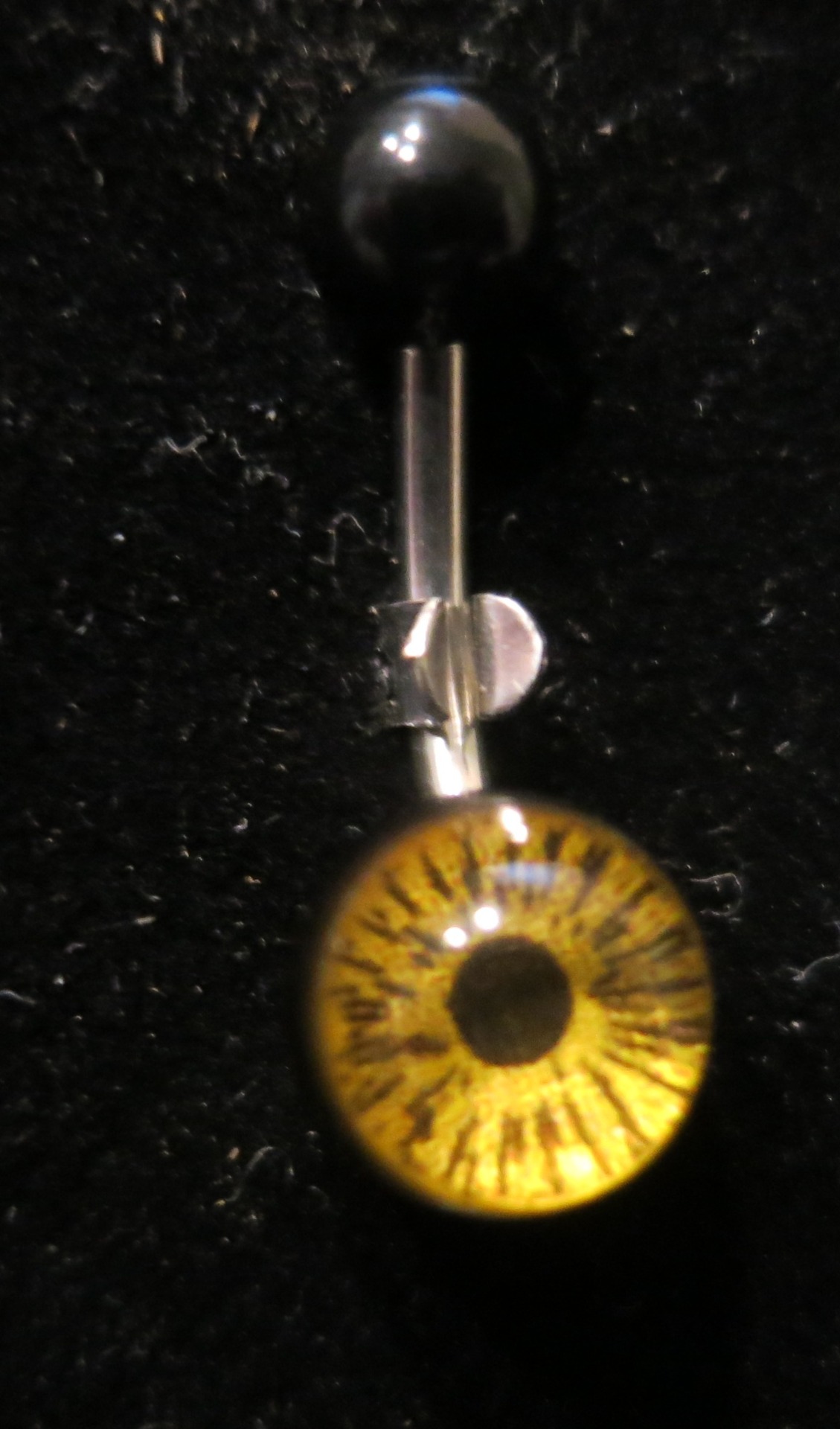 Napakoru. Keskellä silmä, varsi titaania. Musta tausta ja pallo. Varren pituus 0,9 cm.